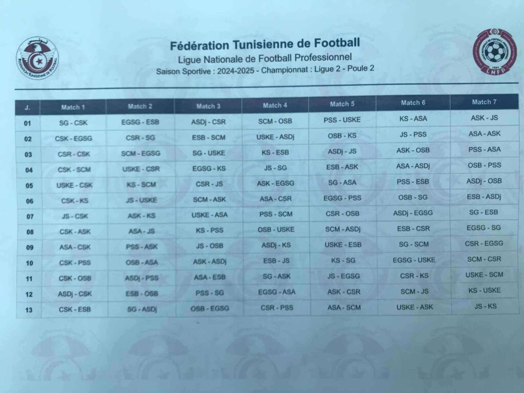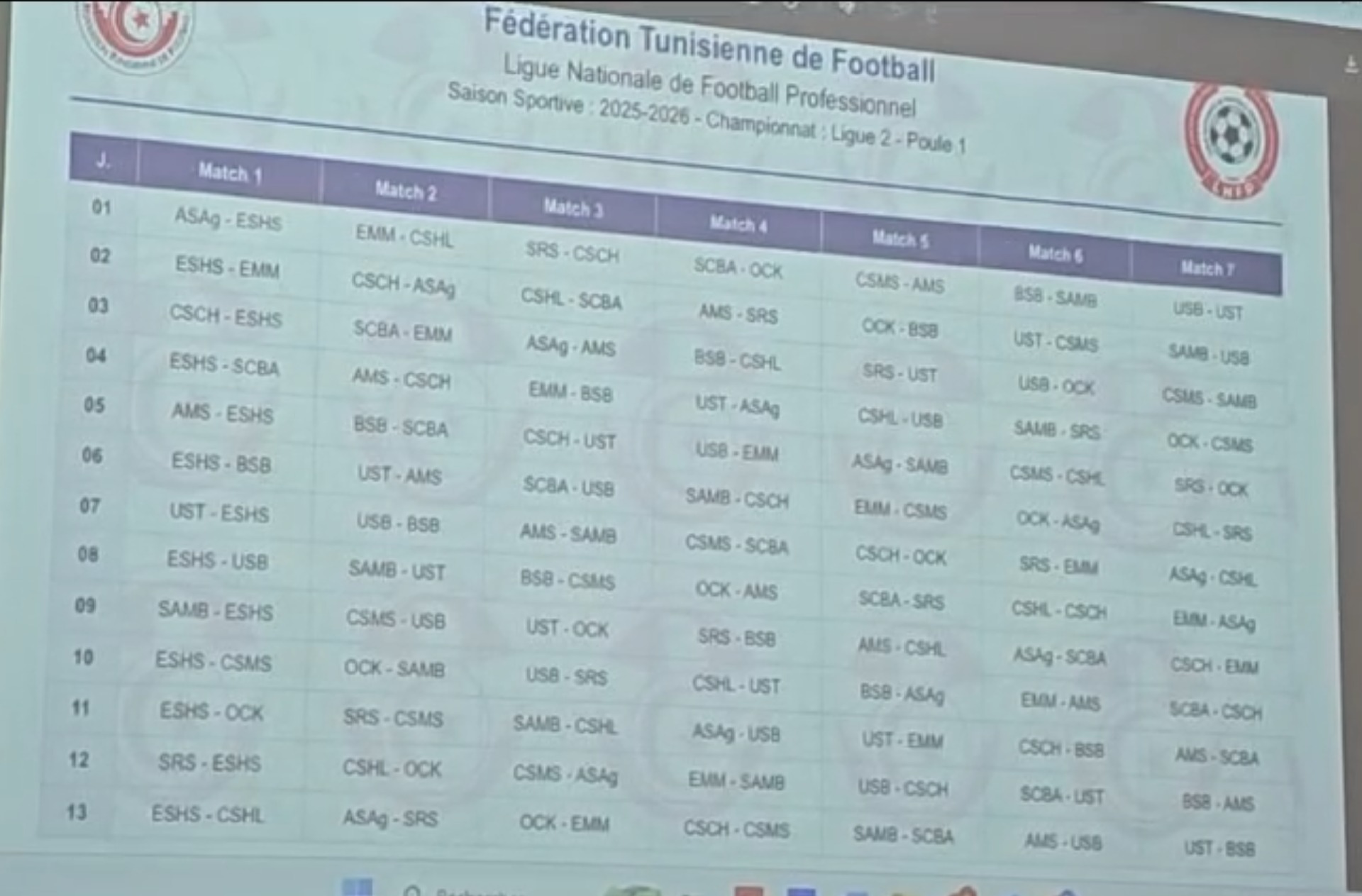 Der tunesische Fußballverband (FTF) hat am Montag den offiziellen Spielplan für die Saison 2025/2026 der Ligue 2 ausgelost und bekannt gegeben.